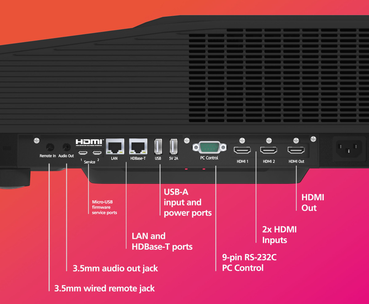 - Unrestricted connectivity and ease of use: Offers HDMI 2.0 and HDBaseT wired connectivity, and wireless projection via Miracast™ for Windows & Android. Where space is limited, simply key in the projector's IP address to control it wirelessly from a PC or smartphone. Its remote controller lets you easily adjust the motorized focus.