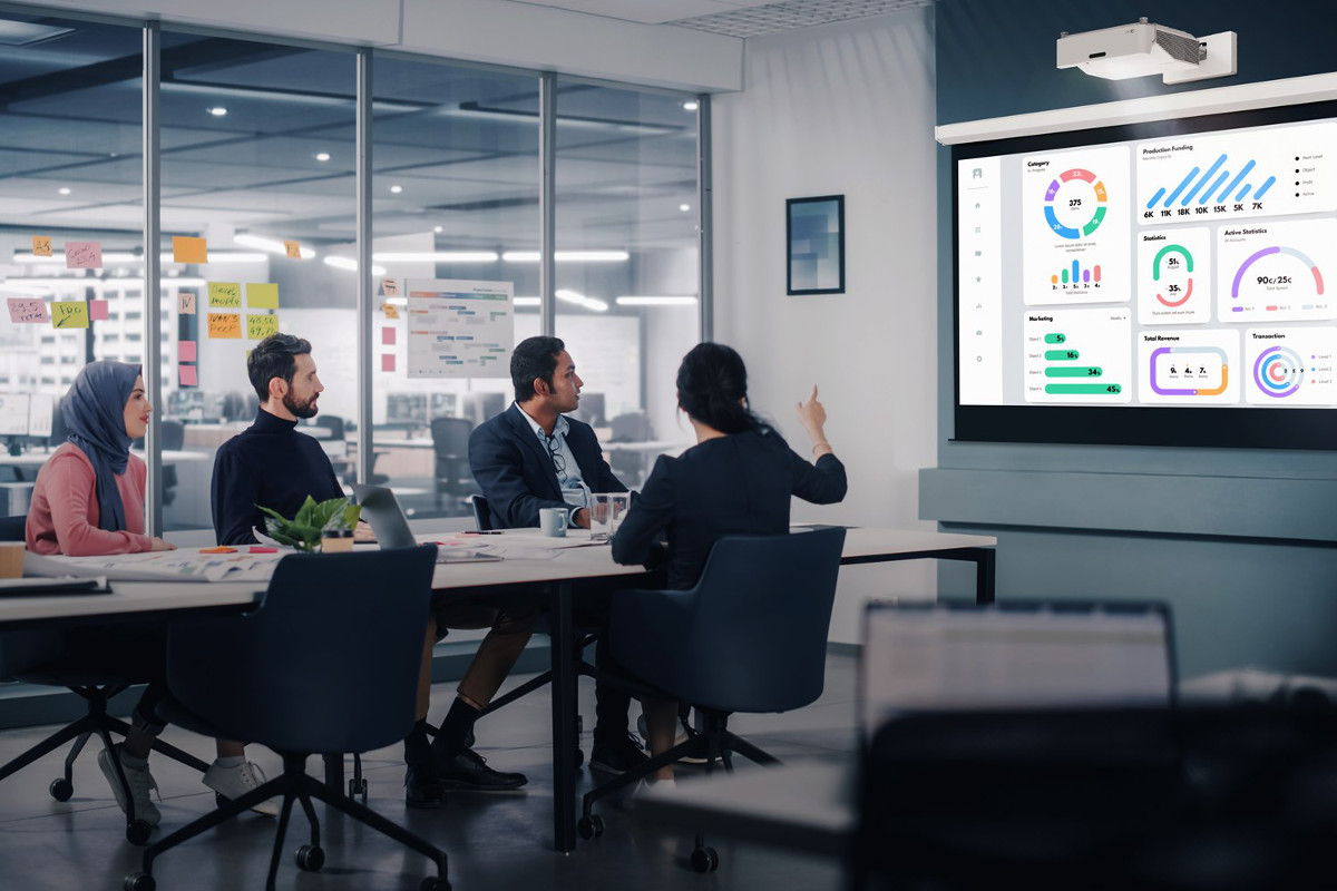Compact 4K UHD ultra-short throw laser projector with HDBaseT